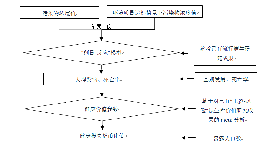 (3) 估计城市生命价值参数,结合城市医疗成本数据,对城市空气污染物浓度超标所致健康损失进行货币化。